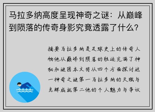 文章摘要:《黑曼巴:科比布莱恩特的传奇生涯与篮球精神》深入探索了科比布莱恩特在篮球领域的传奇经历,揭示了他在球场内外的非凡魅力。从他的职业生涯起始,到成为NBA的超级巨星,再到退役后的影响力延续,全书生动展现了科比的执着、拼搏和对篮球的热爱。科比不仅是一位传奇球员,更是一位激励人心的领袖,他的精神将...